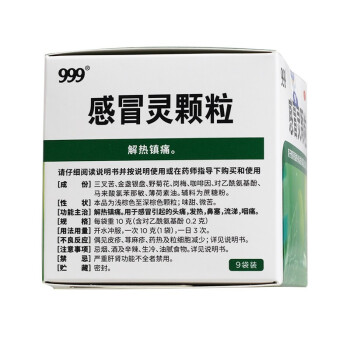 • 999 三九感冒灵颗粒 10g*9袋头鼻塞感冒引起的头痛流鼻涕咽干咳嗽 感冒药感冒清热 10g*9袋【一盒3天剂量】
